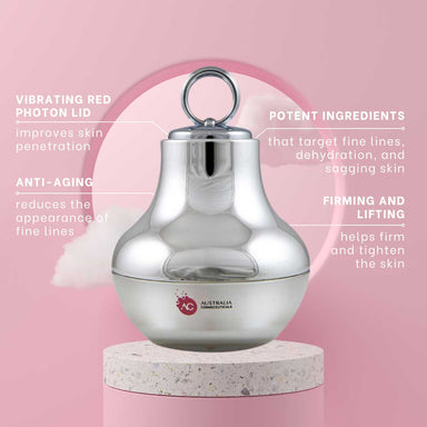 The ultimate solution for revitalising aging skin with built in vibrating red photon in the lid for tightening and repairing the skin instantly. Ne...