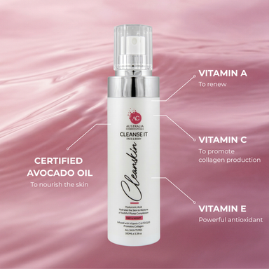 Vit A to renew. Vit B5 to condition. Vit C to promote collagen and brighten. Vit E to protect. Avocado oil to nourish the skin.